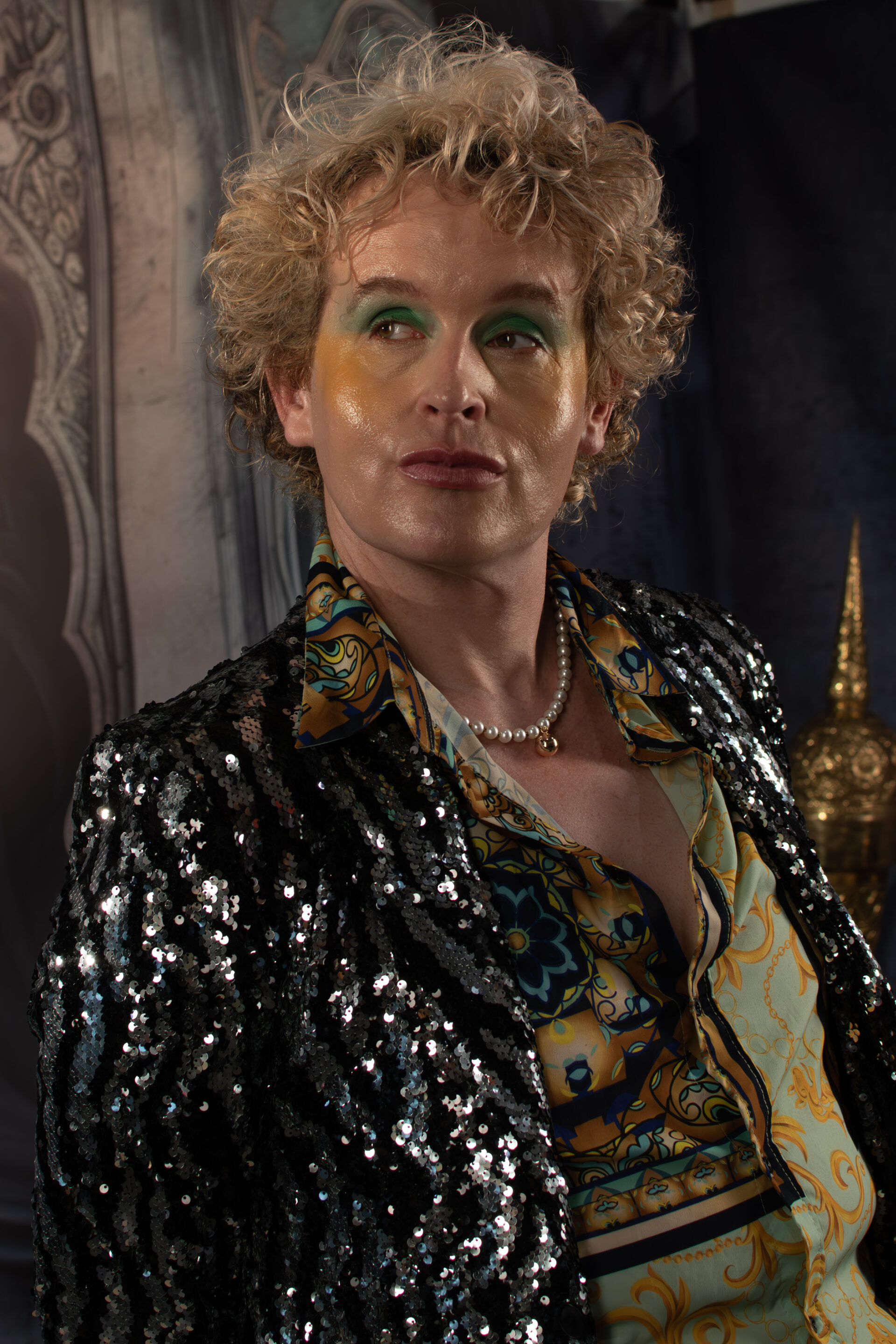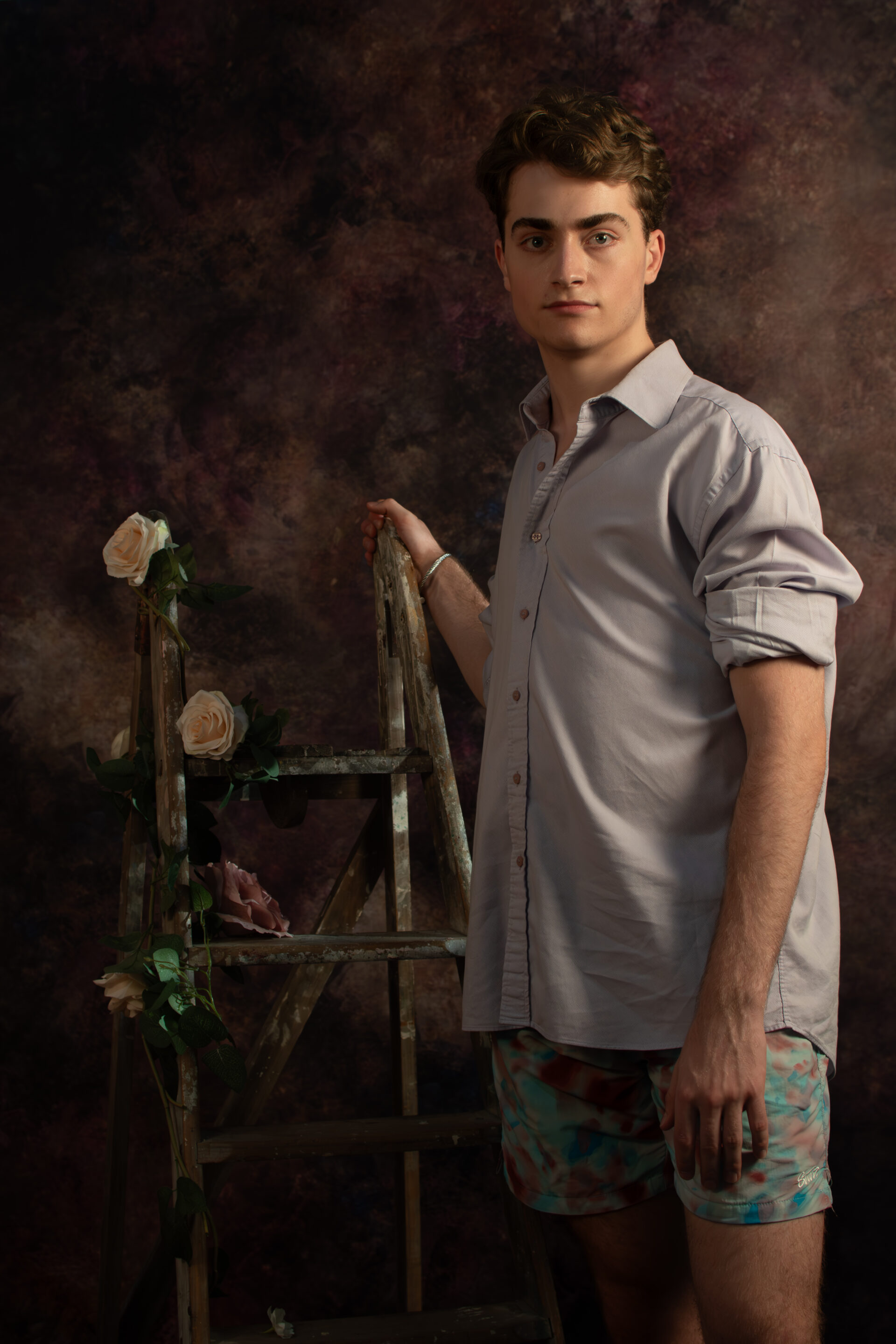 A stylised portrait focusing on expression, wardrobe, and strong directional lighting.